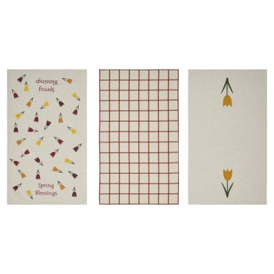 Spring In Bloom Spring Blessings & Tulips Tea Towel Set of 3 16×28
