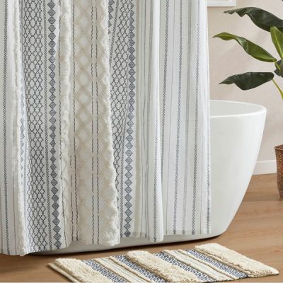INK+IVY Imani Cotton Printed Shower Curtain with Chenille in White/Navy, 72×72″ II70-1319