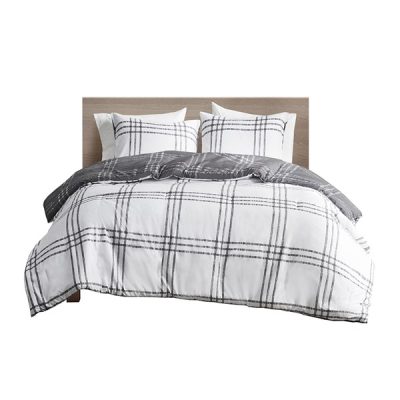 Intelligent Design Pike Plaid Reversible Comforter Set in White/Gray, Twin/Twin XL ID10-2201