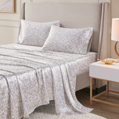 Madison Park Essentials Printed Satin Sheet Set in Taupe Leopard, King MPE20-995