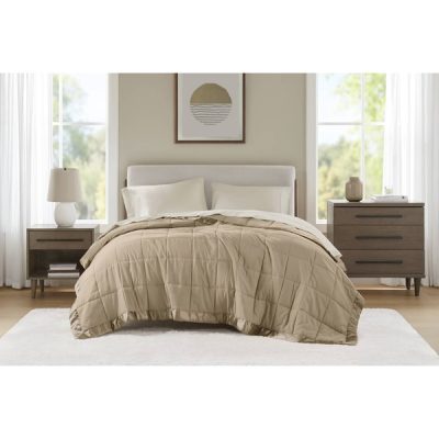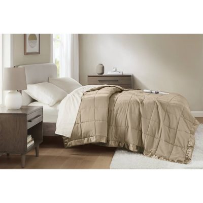 Madison Park Windom Lightweight Down Alternative Blanket with Satin Trim in Brown, Full/Queen MP51-545