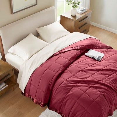 Madison Park Windom Lightweight Down Alternative Blanket with Satin Trim in Burgundy, King MP51-8136
