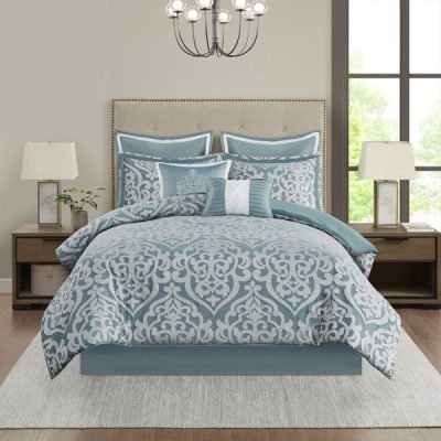 Madison Park Odette 8 Piece Jacquard Comforter Set in Aqua/Silver, Cal King MP10-8081