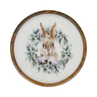 Bunny Hop Wooden Plate Natural w/ Bunny & Wreath 11.5 inch Diameter