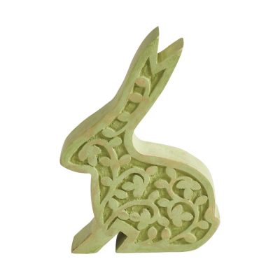 Bunny Hop Wooden Sitting Bunny In Green 8.75×6.5×1.5