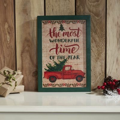 The Most Wonderful Time Truck Burlap Wall Hanging Sign 13×9
