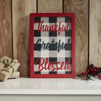 Thankful Grateful Blessed Christmas Gingham Wall Hanging Sign 13×9