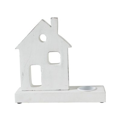 Tealight Holder Wooden Saltbox House w/ Star Natural 9×6.75×2.5