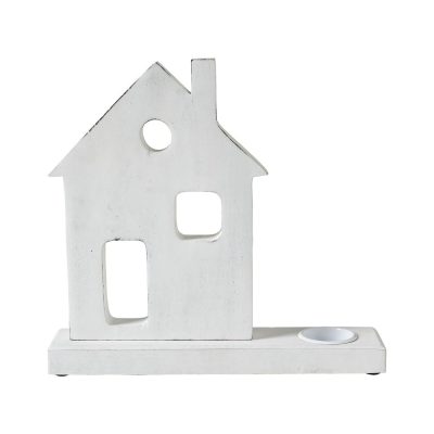 Tealight Holder Wooden Saltbox House w/ Star Natural 10.25x9x2.5