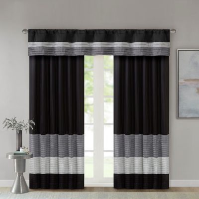 Madison Park Amherst Polyoni Pintuck Window Valance in Black, 50×18″ MP41-2226