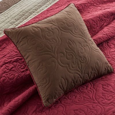 Madison Park Attingham 7 Piece Quilt Set with Euro Shams and Throw Pillows in Red, King/Cal King MP13-8805