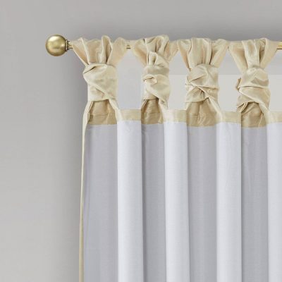 Madison Park Emilia 100% Polyester Solid Faux Silk Lined Twist Tab Total Blackout Window Curtain in Champagne, 50×84″ Blackout MP40-6368