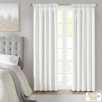 Madison Park Emilia 100% Polyester Solid Faux Silk Lined Twist Tab Total Blackout Window Curtain in White, 50×95″ Blackout MP40-6367