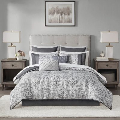 Madison Park Emilia 12 Piece Jacquard Comforter Set with Bed Sheets in Silver, Cal King MP10-8439