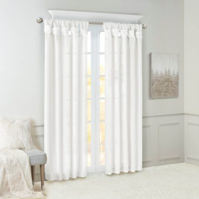 Madison Park Emilia 100% Polyester Solid Faux Silk Lined Twist Tab Window Curtain in White, 50×84″ WIN40-115