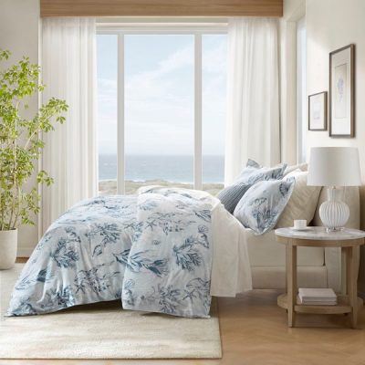 Harbor House Paros Coral Reef 100% Cotton Sateen Duvet Cover Set in Navy/Blue, King HHD12-1954