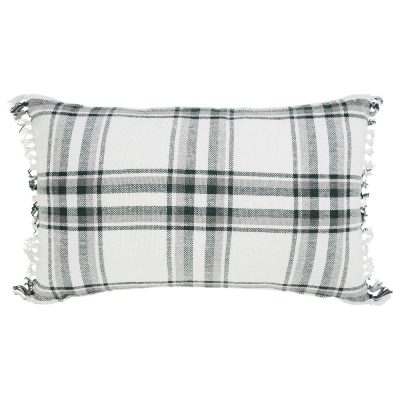 Harper Plaid Green White Pillow Fringed 14×22