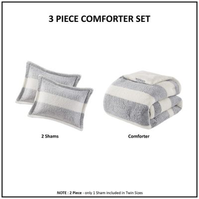 Madison Park Hollis Sherpa Comforter Set in Grey Stripe, Full/Queen MP10-8265