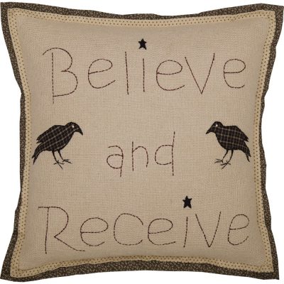 VHC Brands Kettle Grove Believe & Receive 18×18 Inch Farmhouse Cotton Throw Pillow Accent Decor