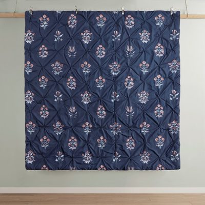 Madison Park Marfa 4 Piece Pintuck Comforter Set with Throw Pillow in Navy, King/Cal King MP10-8411