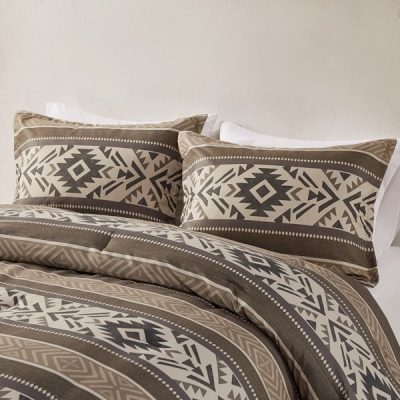 Madison Park Mariposa 5 Piece Stripe Herringbone Comforter Set with Throw Pillows in Brown, Full/Queen MP10-8464