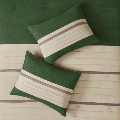 Madison Park Palmer 7 Piece Pieced Faux Suede Comforter Set in Green, King MP10-7489