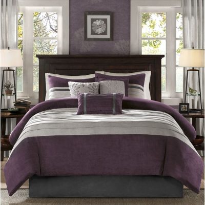 Madison Park Palmer 7 Piece Pieced Faux Suede Comforter Set in Purple, Queen MP10-304