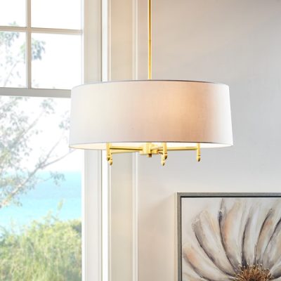 Hampton Hill Presidio 5-Light Dimmable Chandelier with Drum-shaped Fabric Shade & Adjustable Height in Gold/White, One Size MPS150-0067