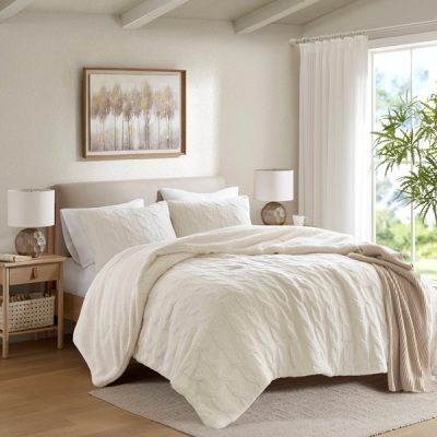 Madison Park Riordan Waffle Knit Chenille Comforter Set in Ivory, King MP10-8891