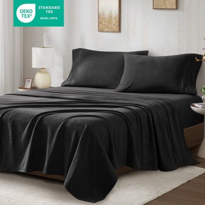True North by Sleep Philosophy Micro Fleece Sheet Set in Black, Queen TN20-0463