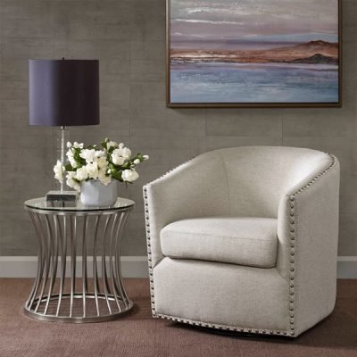 Madison Park Tyler Upholstered Swivel Barrel Chair with Nailheads in Natural Multi, One Size MP103-0236