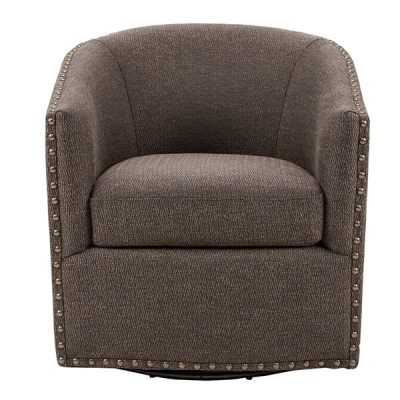 Madison Park Tyler Upholstered Swivel Barrel Chair with Nailheads in Chocolate, One Size MP103-0481
