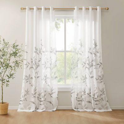 Madison Park Averil Grommet Top Sheer Bird on Branches Burnout Window Curtain in Grey, 50×95″ MP40-3596