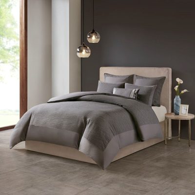N Natori Hanae Cotton Blend Yarn Dyed 3 Piece Duvet Cover Set in Grey, King NS12-3252