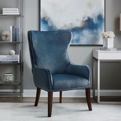 Madison Park Hancock Button Tufted Wingback Accent Chair with Nailhead Trim in Blue, One Size FPF18-0468