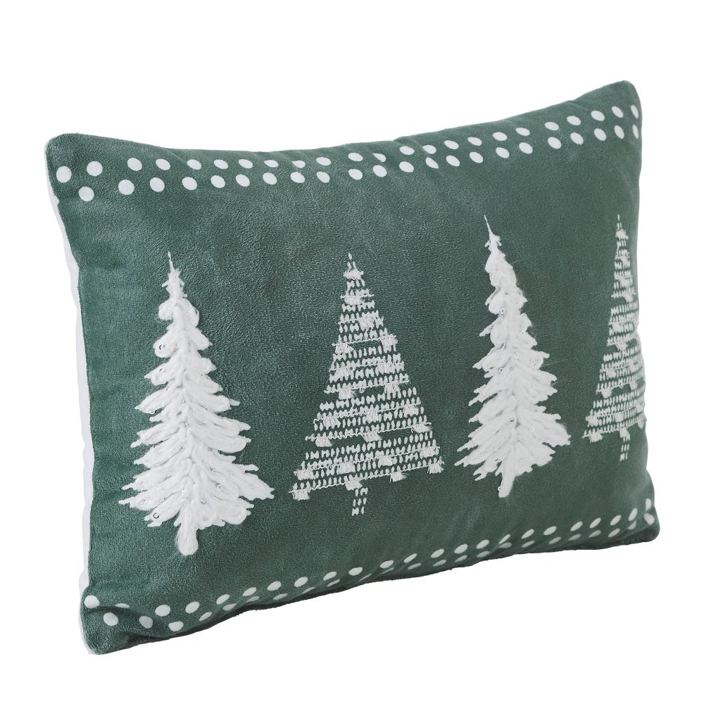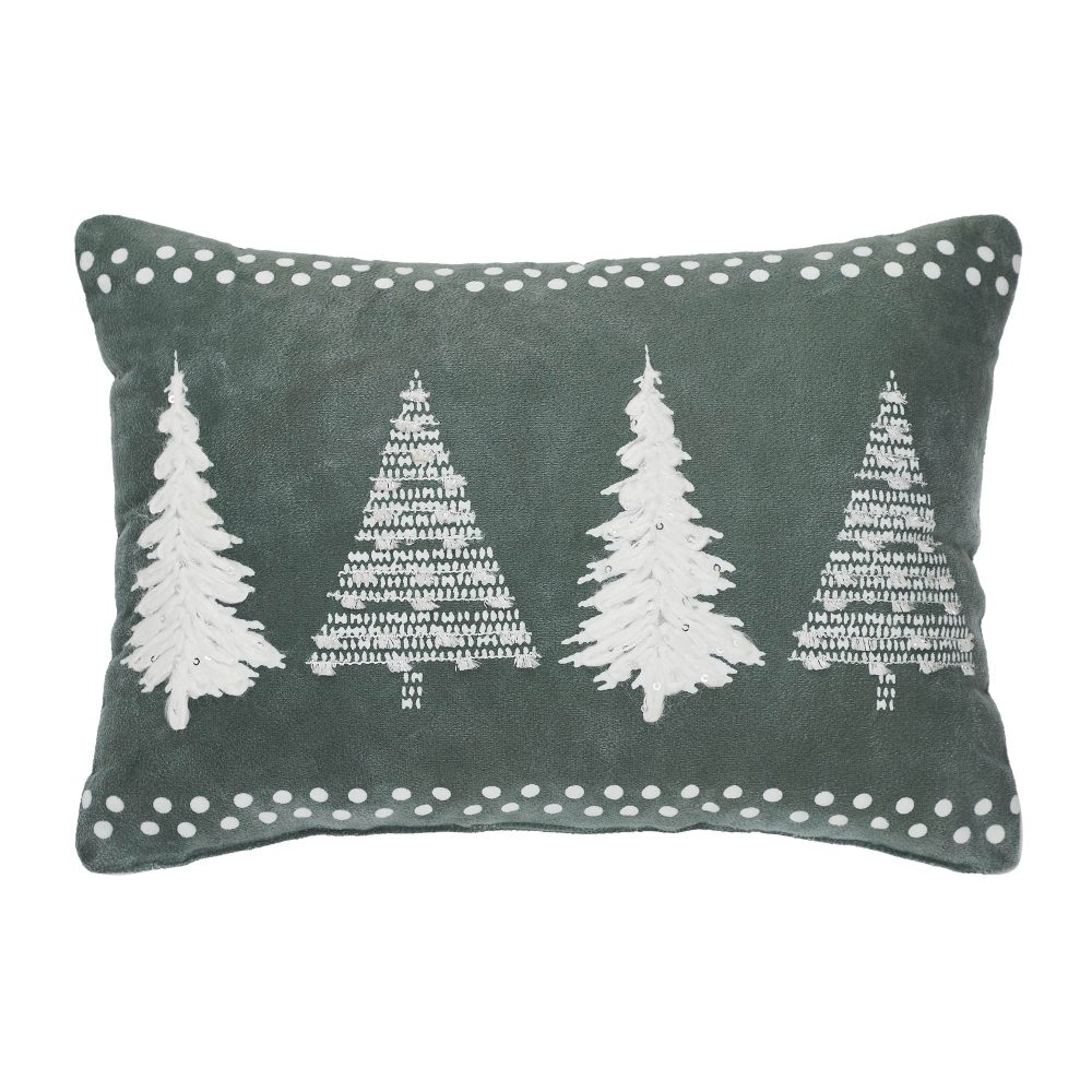 Introducing the VHC Brands 4 Christmas Trees Green Velvet Pillow, a delightful addition to your winter and holiday decor. Crafted from polyester, this decorative throw pillow offers both durability and a luxurious texture, perfect for adding a touch of festive charm to your home. Measuring 14x10 inches, its rectangular shape provides the ideal size for accenting your bed, entryway bench, or living room sofa with seasonal flair. Embrace the spirit of Christmas with the charming print of four Christmas trees and polka dot borders adorning the velvet pillow. The rich hues of evergreen and bright white evoke the festive ambiance of the holiday season, creating a warm and inviting atmosphere in any room. Whether placed in your bedroom, entryway, or living room, this 4 Christmas Trees Green Velvet Pillow adds a touch of farmhouse-inspired charm to your holiday decor. Designed for both style and convenience, this pillow is spot clean only, ensuring easy care and maintenance while preserving its vibrant colors and intricate printed and embroidered detail. Whether you're snuggling up with loved ones or hosting holiday gatherings, the VHC Brands 4 Christmas Trees Green Velvet Pillow brings a sense of warmth and joy to your seasonal decor. Embrace the spirit of the season with this delightful throw pillow that celebrates the timeless beauty of Christmas trees and the magic of the holiday season.