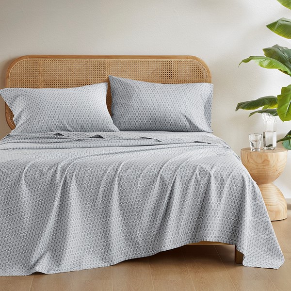 510 Design 144 Thread Count Cotton Printed Sheets in Diamond Grey, Queen AM20-0483