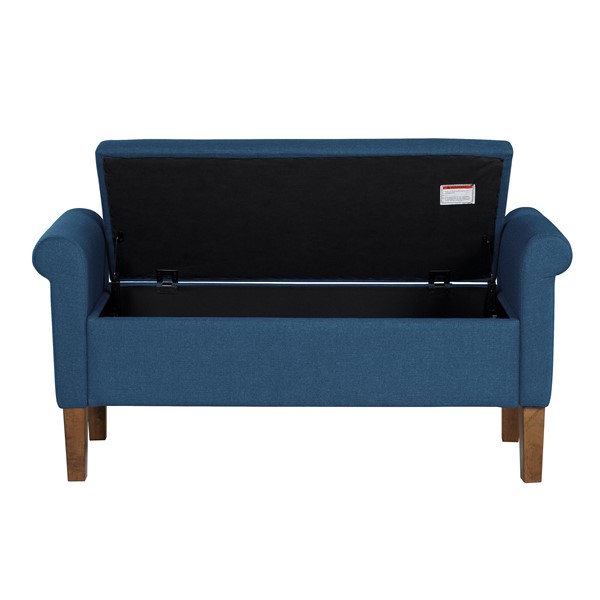 Elevate your space with the timeless appeal of the 510 Design Aubrey Storage Bench. Blending transitional style with practicality, this bench boasts rolled armrests and is fully upholstered for a touch of sophistication. Enjoy comfort with its foam-filled seat cushion and stay organized with ample storage space under the flip-top seat. Crafted with a sturdy solid wood and plywood frame, complemented by solid wood legs, it’s perfect for any room. Easy leg assembly with included tool makes it a hassle-free addition to your home. Redefine your decor with transitional elegance and functionality!