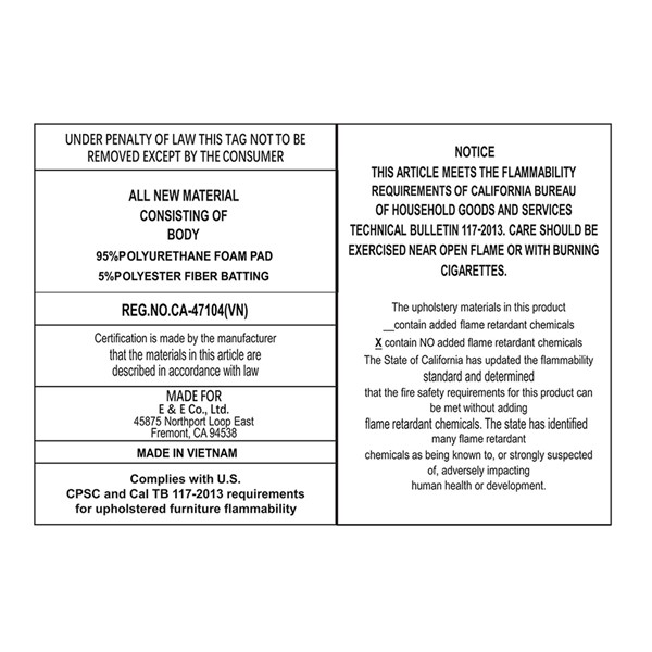 Cushion or Upholstery Fill Material: Foam
