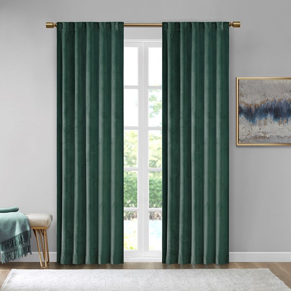 Accentuate your home with the 510 Design Colt Poly Velvet Window Panel Pair. Made from soft solid green poly velvet, these velvet curtain panels exhibit a light sheen and plush texture that soften your decor. The rich, thick velvet fabric creates a room darkening effect and provides extra privacy. This window panel is also OEKO-TEX certified, meaning it does not contain any harmful substances or chemicals, ensuring quality comfort and wellness. A rod pocket top and back tabs make these room darkening curtains easy to hang while also providing a clean tailored look. Machine washable for easy care, this window panel pair add a luxurious touch to your living room or bedroom. Fits up to a 1.25" diameter rod.