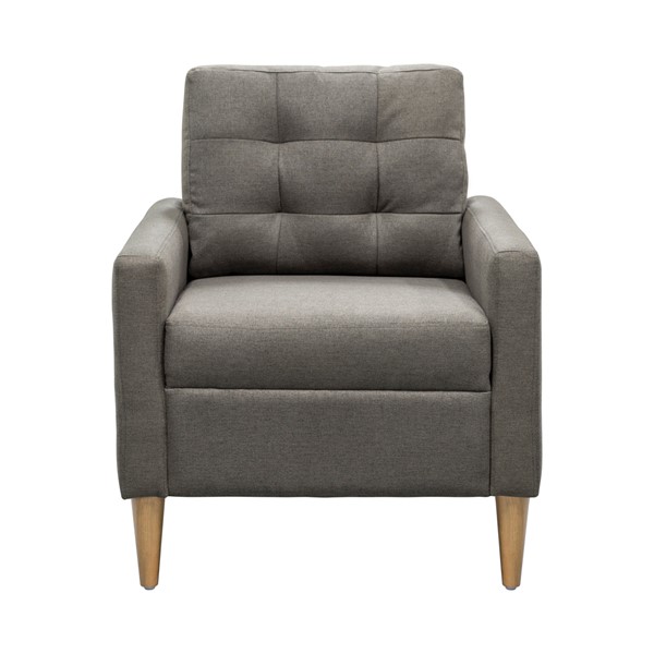 Upgrade your living space with our modern accent chair. With clean lines and a sleek track arm silhouette, it offers a contemporary touch to any room. Built to last, it features a sturdy solid wood and plywood frame, sinuous springs, and web suspension seat support. The high-density foam provides superior support, and the adjustable levelers and tool-less assembly make it easy to set up.