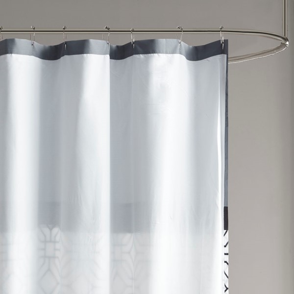 The 510 Design Donnell Embroidered and Pieced Shower Curtain offers a fresh update to your bathroom. A pintucked and pieced design is featured in grey and black hues, for a simple updated look to your decor. An embroidered geometric design adds texture and dimension, while an added lining provides better drapability and an extra layer of privacy. Made from soft microfiber, this pieced shower curtain brings a refreshing touch to your bathroom decor.