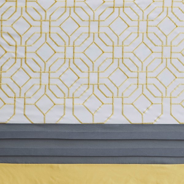 The 510 Design Donnell Embroidered and Pieced Shower Curtain offers a fresh update to your bathroom. A pintucked and pieced design is featured in grey and yellow hues, for a simple updated look to your decor. An embroidered geometric design adds texture and dimension, while an added lining provides better drapability and an extra layer of privacy. Made from soft microfiber, this pieced shower curtain brings a refreshing touch to your bathroom decor.