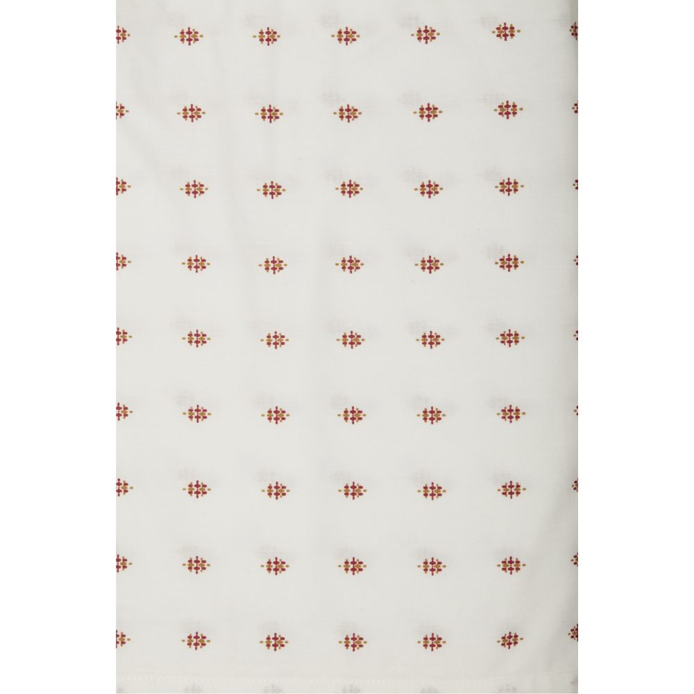 - 100% lightweight, breathable cotton (skirt) + deck fabric in a crisp White fabric with a symmetrical mini design in Gold & Brick Red.