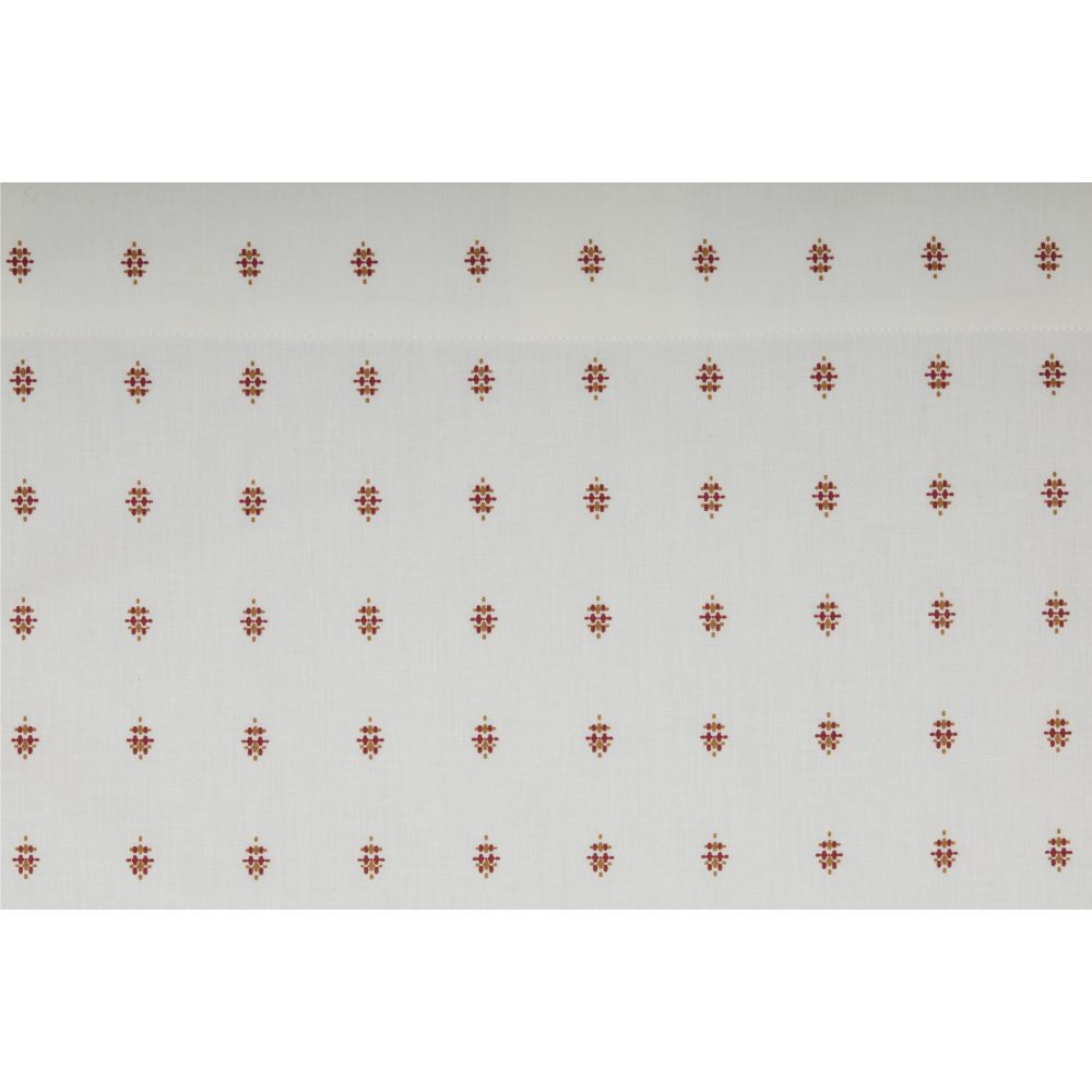 - 100% lightweight, breathable cotton lined with sheeting fabric. Crisp White fabric with a symmetrical mini design in Gold & Brick Red.