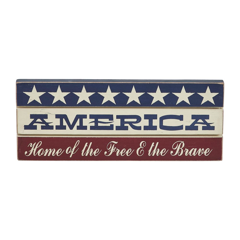 AMERICA Home Of The Free And The Brave w/ White Stars On Blue Stripe MDF Sign 3.5×9