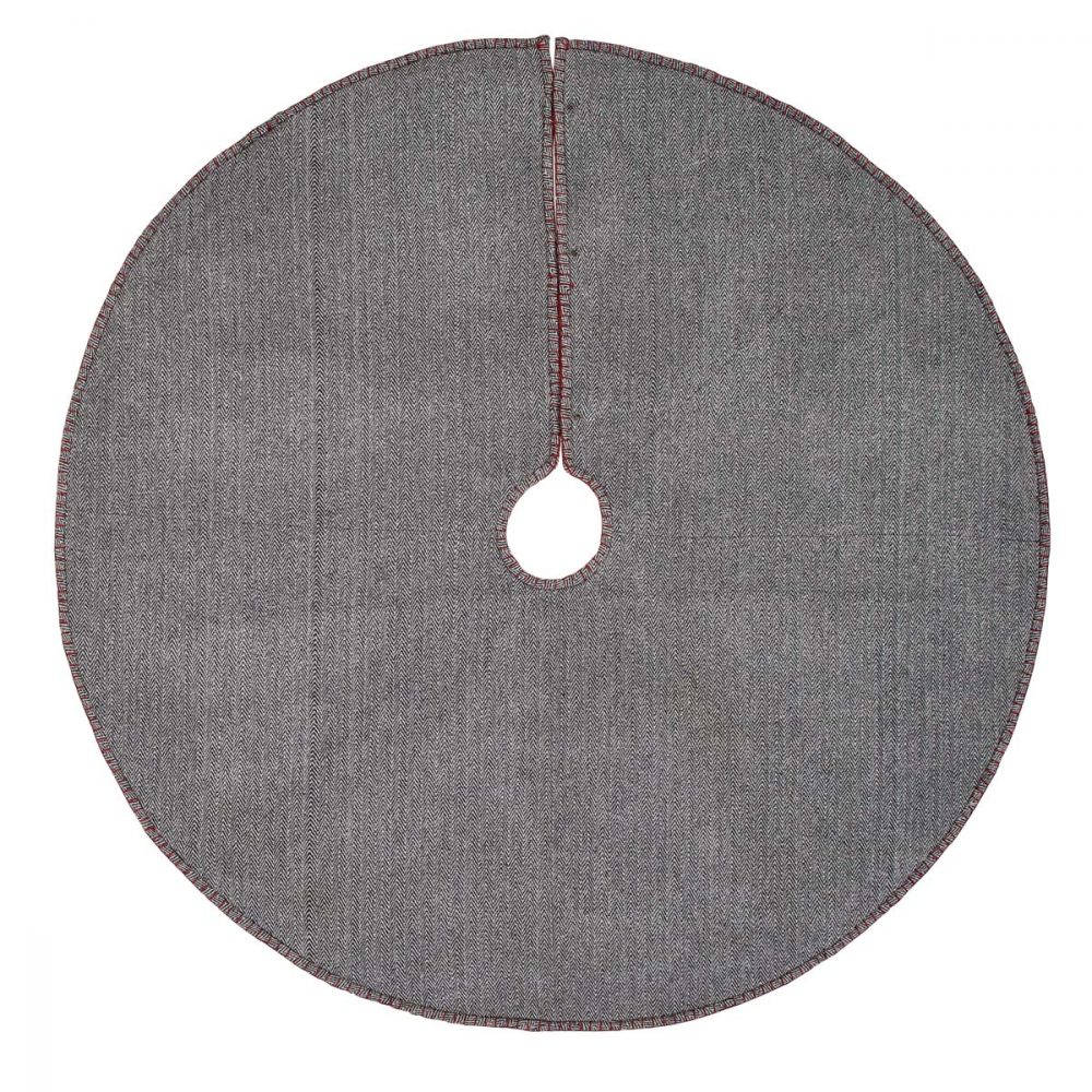 - HOLIDAY DECOR: Finish decorating your cozy rustic farmhouse for the holidays with a warm, festive look. This durable plaid tree skirt is decorated in cherry red, iron grey, and marshmallow plaid on herringbone weave felt to give you that warm feeling of Christmas. Perfect for complementing your rustic farmhouse decor.