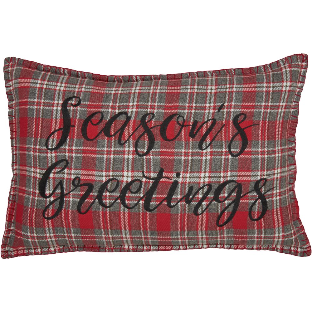 Celebrate the holiday season with warmth and tradition this year. The Anderson Seasons Greetings Pillow mixes an on-trend red and grey over-scale plaid with grey herringbone for a timeless, classic touch. Presenting the comforting words "season greetings" embroidered in black for added texture and detailed design. Reverses to a matching plaid with button closures. Toss this Christmas pillow on your living room furniture to complete your holiday decor, or add it to your bedroom for cozy comfort.