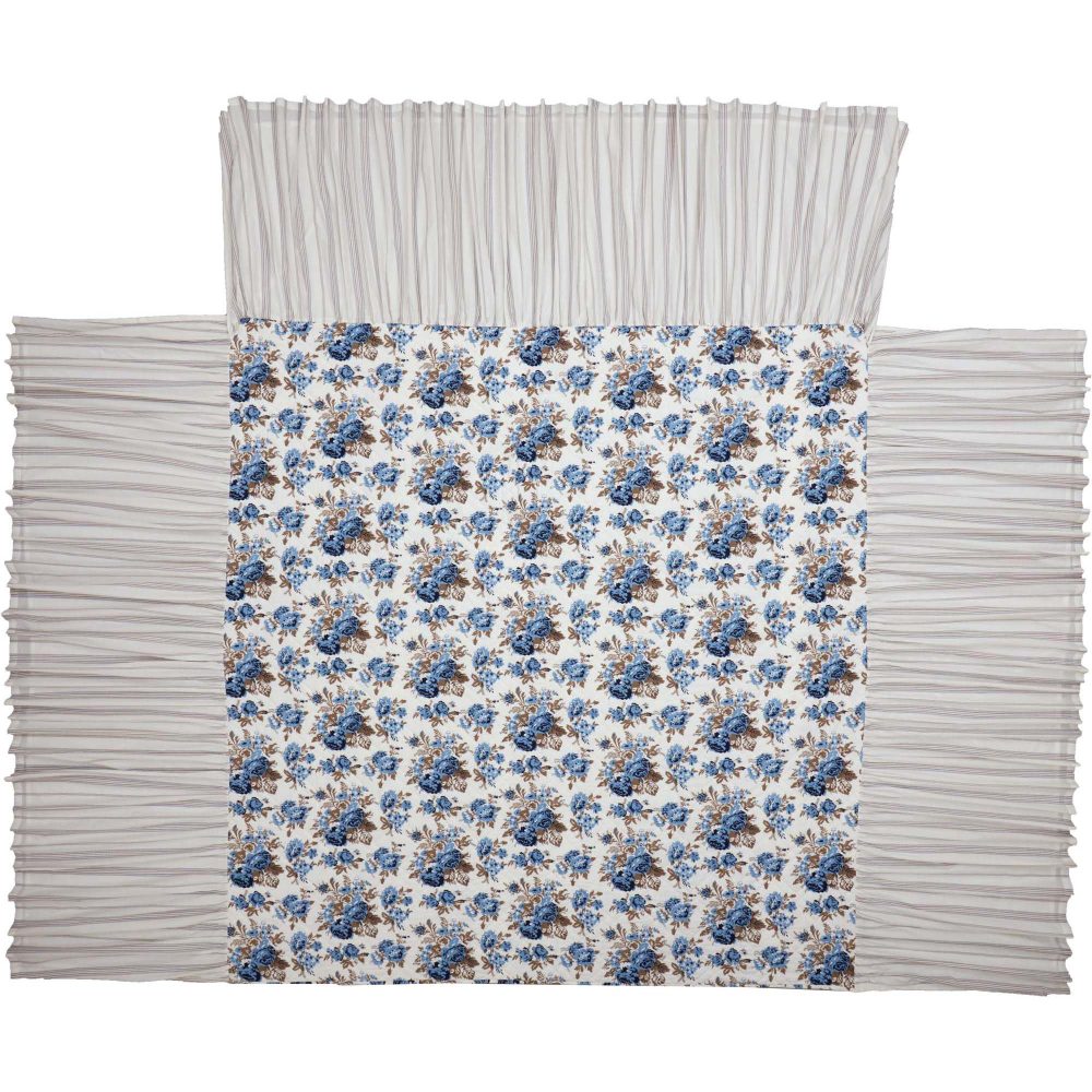 Timeless elegance meets quality you can depend on with this vintage toile-inspired floral coverlet. The Annie Blue Floral Ruffled King Coverlet measures 80x76 with a 27 inch ruffle on three sides to securely cover your bed frame in country chic style. A calming mixture of dusk blue, soft white, and portabella brown offers a striking yet relaxed cozy cottage feel. The unique, exaggerated ruffle design features a soft, striped fabric for a romantic, put-together style. This lightweight cotton coverlet reverses to dusk blue and white check for added detail when styling your bed. Constructed from 100 percent cotton, this French country style blanket coordinates with the Annie Blue Floral Collection by VHC for shabby chic style from a trusted name in country home decor. Machine washable and iron safe.
