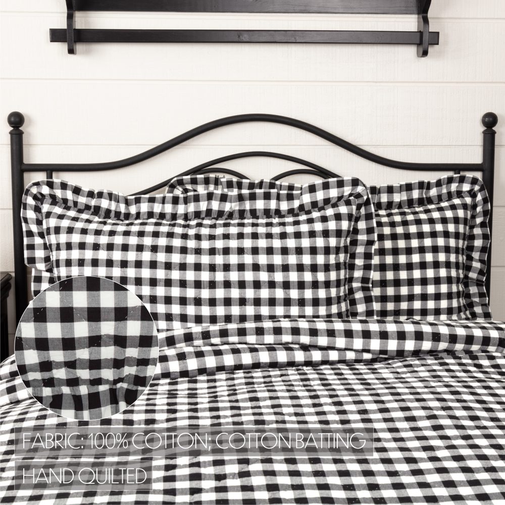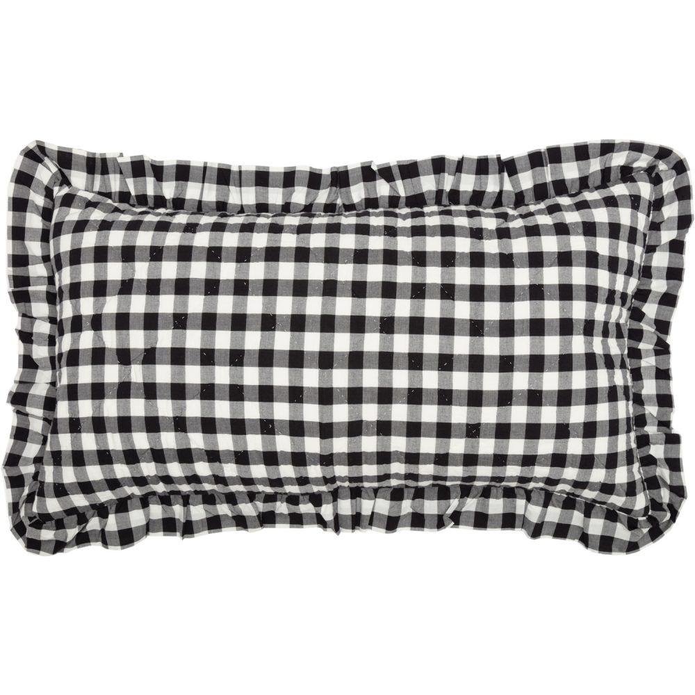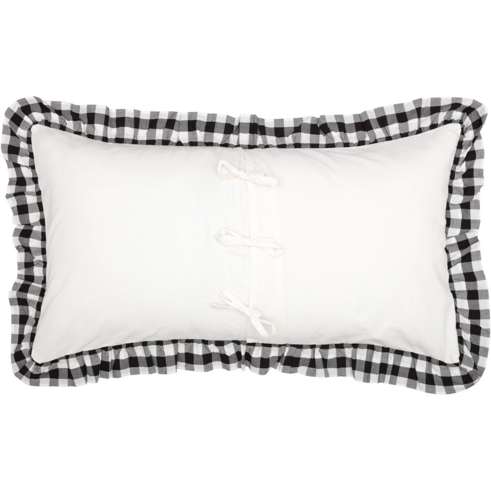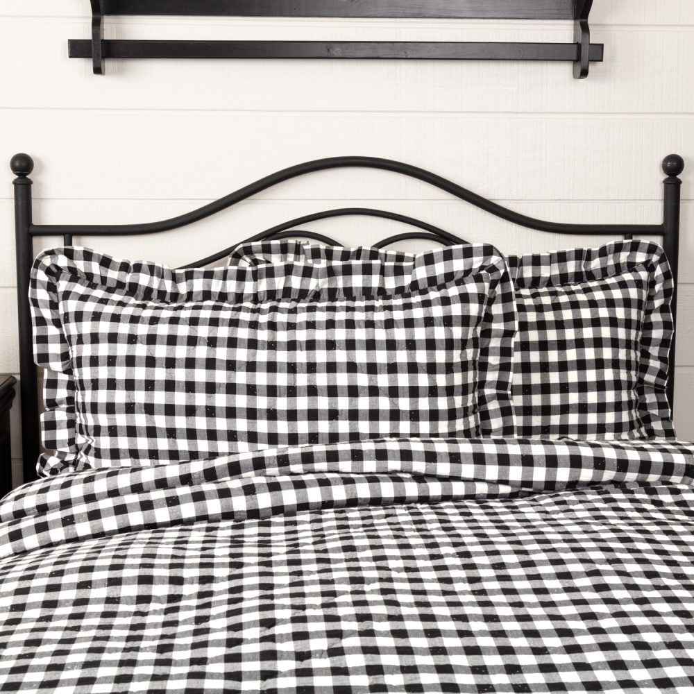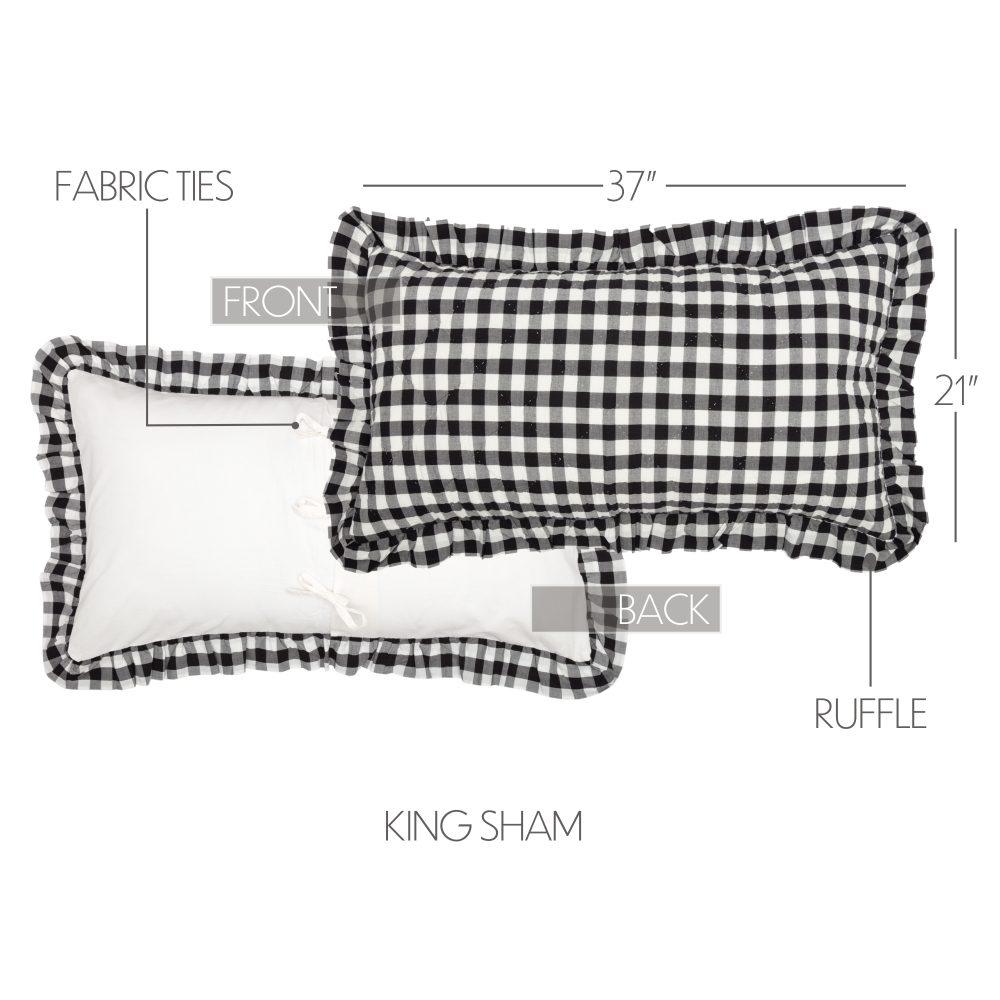 Accent your farmhouse bedroom with classic gingham patterns and soft ruffles for a big helping of country charm. The Annie Buffalo Black Check King Sham includes one 21x37 sham pillow cover. Ruffled pillow shams are a great way to add a finishing touch to farmhouse bedding for a perfectly cozy and put-together feel. This cotton pillow sham includes a three inch ruffle and a delightful large-scale buffalo check pattern in black and white. The decorative pillow case reverses to a soft white back with a tie closure to hold your fill pillow (not included) in securely. Machine washable and iron safe.